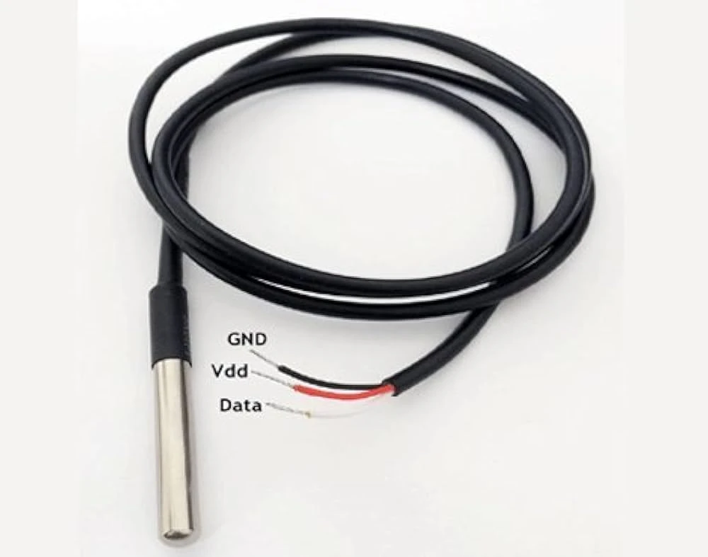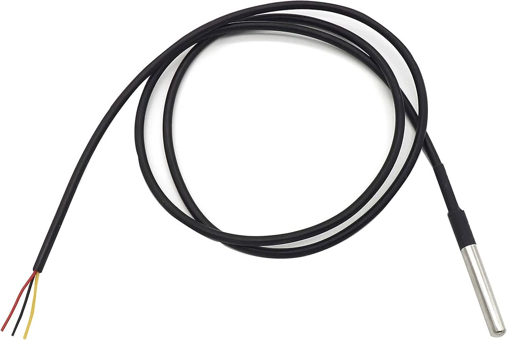 The DS18B20 waterproof temperature probe is a versatile and durable sensor designed for measuring temperature in various environments, including liquids. Encased in a waterproof housing, this probe is well-suited for applications where moisture or immersion is a concern, such as monitoring water temperature in aquariums, pools, or industrial settings. Equipped with a digital output and a unique 64-bit serial code, the DS18B20 probe offers accurate temperature readings with a high degree of precision. Its one-wire interface simplifies connectivity, allowing multiple probes to be daisy-chained on a single data line for efficient data collection. Whether used in outdoor installations or harsh industrial conditions, the rugged construction of the DS18B20 waterproof temperature probe ensures reliable performance and long-term durability. Its compact design facilitates easy integration into existing systems, making it an ideal solution for temperature monitoring in challenging environments.