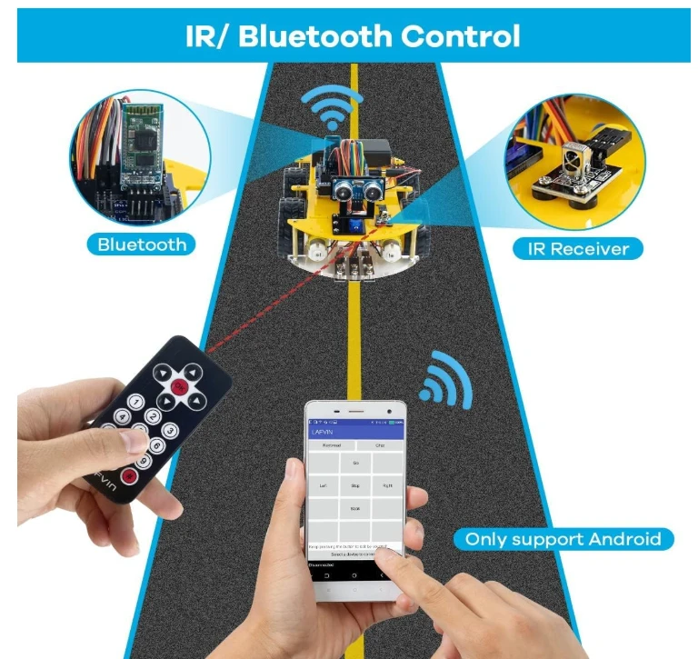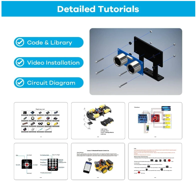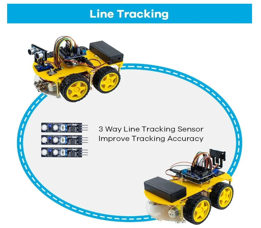 components Included:UNO R3 board, ultrasonic sensor, line tracker, motors, chassis,Wheels,Wire;