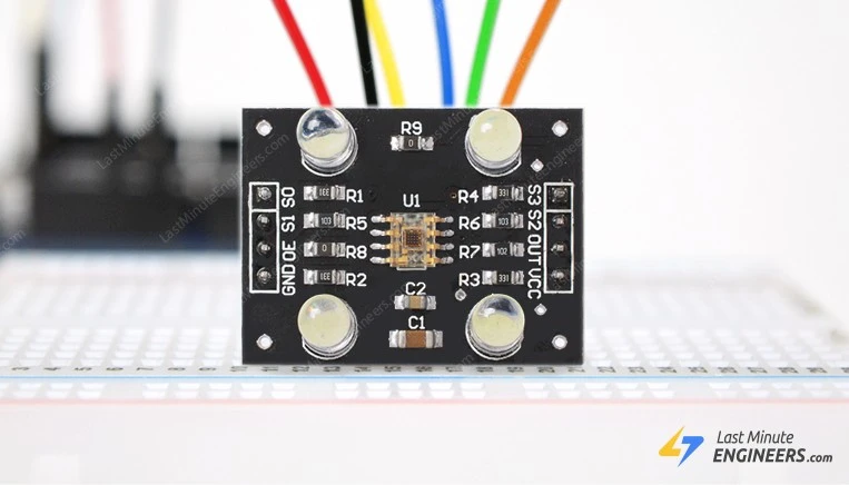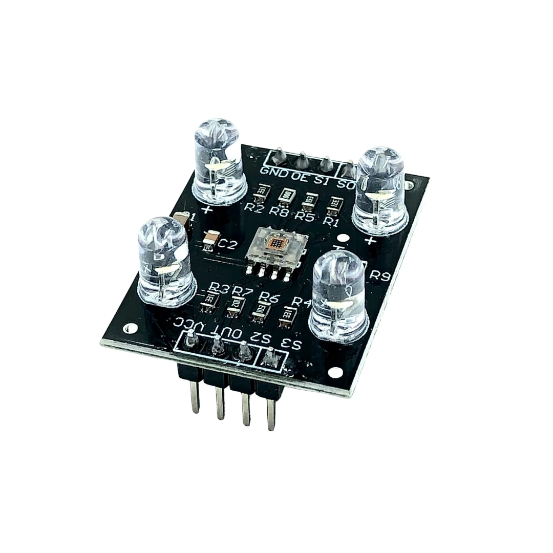 The TCS3200 Color Recognition Sensor Module is equipped with a high-quality light sensor that enables color detection by analyzing Red, Green, and Blue components. Its user-friendly design features all TCS3200 pins conveniently accessible via 0.1″ headers, facilitating integration with PCBs, breadboards, or stripboards. Enhanced by four white LEDs, the module ensures sufficient illumination for accurate color sensing, regardless of ambient lighting conditions. Operating within a single supply voltage range of 2.7V to 5.5V, it offers compatibility with a wide array of microcontrollers, including PICs, AVRs, ARM, Arduino, and more. This versatility makes it an ideal choice for various applications across different platforms.